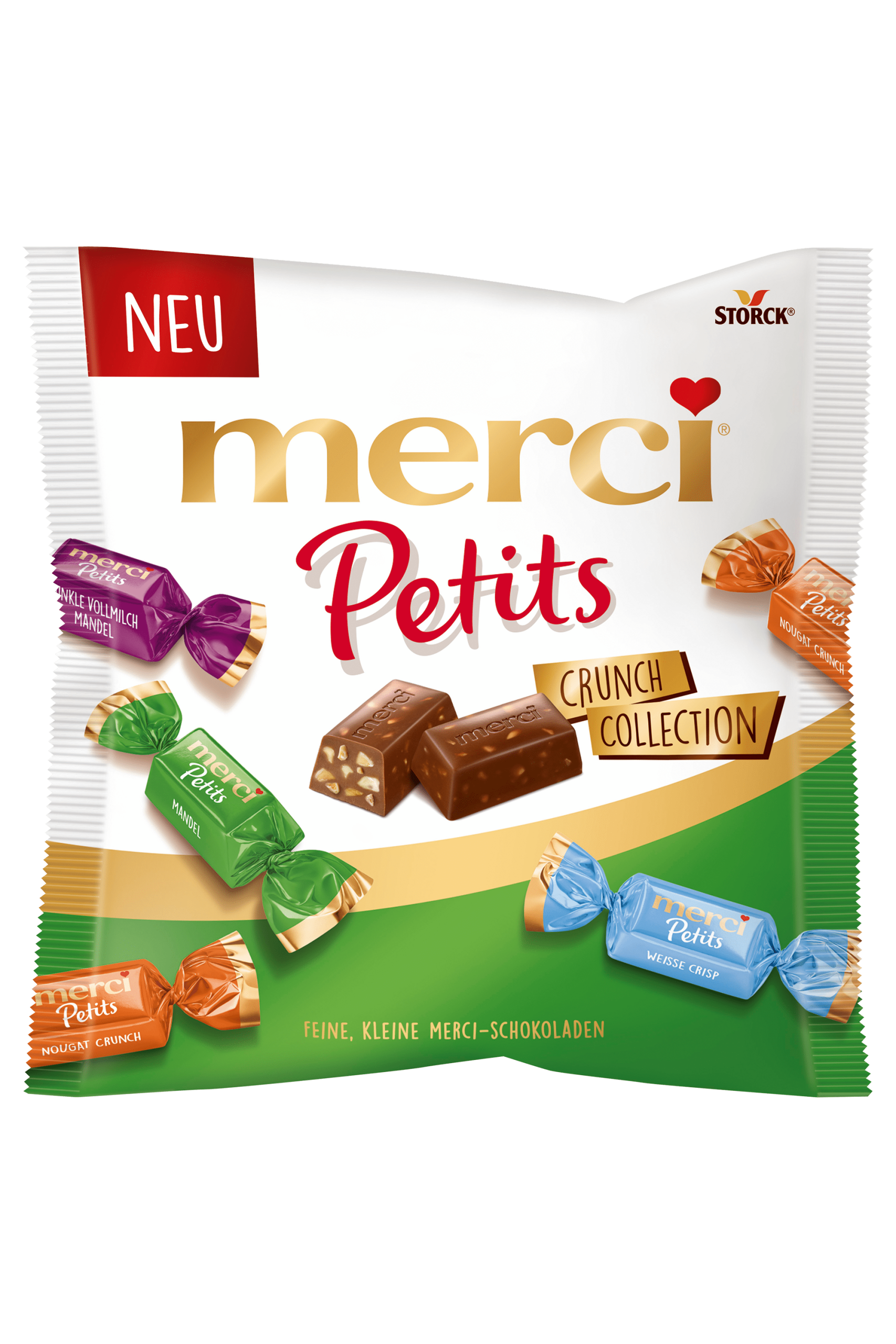 Geniet van de heerlijke Merci Petit Crunch, een assortiment van niet-gevulde en gevulde chocoladespecialiteiten die perfect zijn als traktatie of als cadeau. Deze luxe chocolade bevat een variatie van smaken die het smaakpalet prikkelen, met een perfecte combinatie van melk- en witte chocolade. Bewaar de chocolaatjes op een koele, droge plaats om de versheid te behouden.