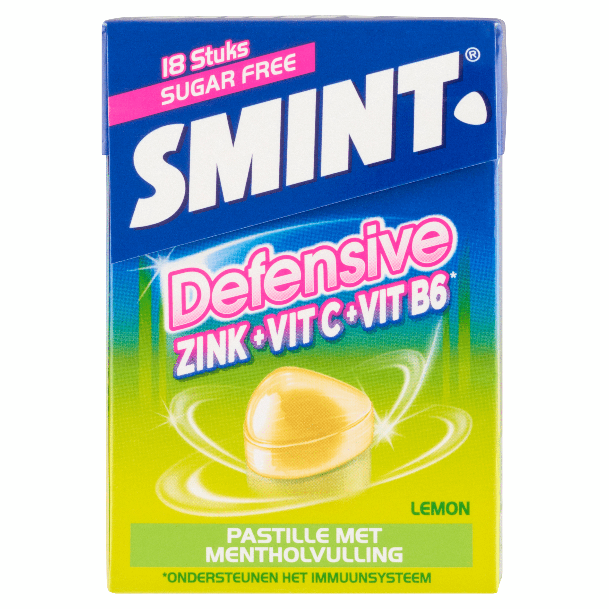 Geniet van de verfrissende smaak van Smint Defensive citroen. Deze heerlijke pastilles verzachten je keel en zijn ideaal om onderweg mee te nemen. Ondersteund door vitamine C, B6 en zink helpt dit product je immuunsysteem en geeft je een zacht fris gevoel in neus en keel. Erg smakelijk en suikervrij!