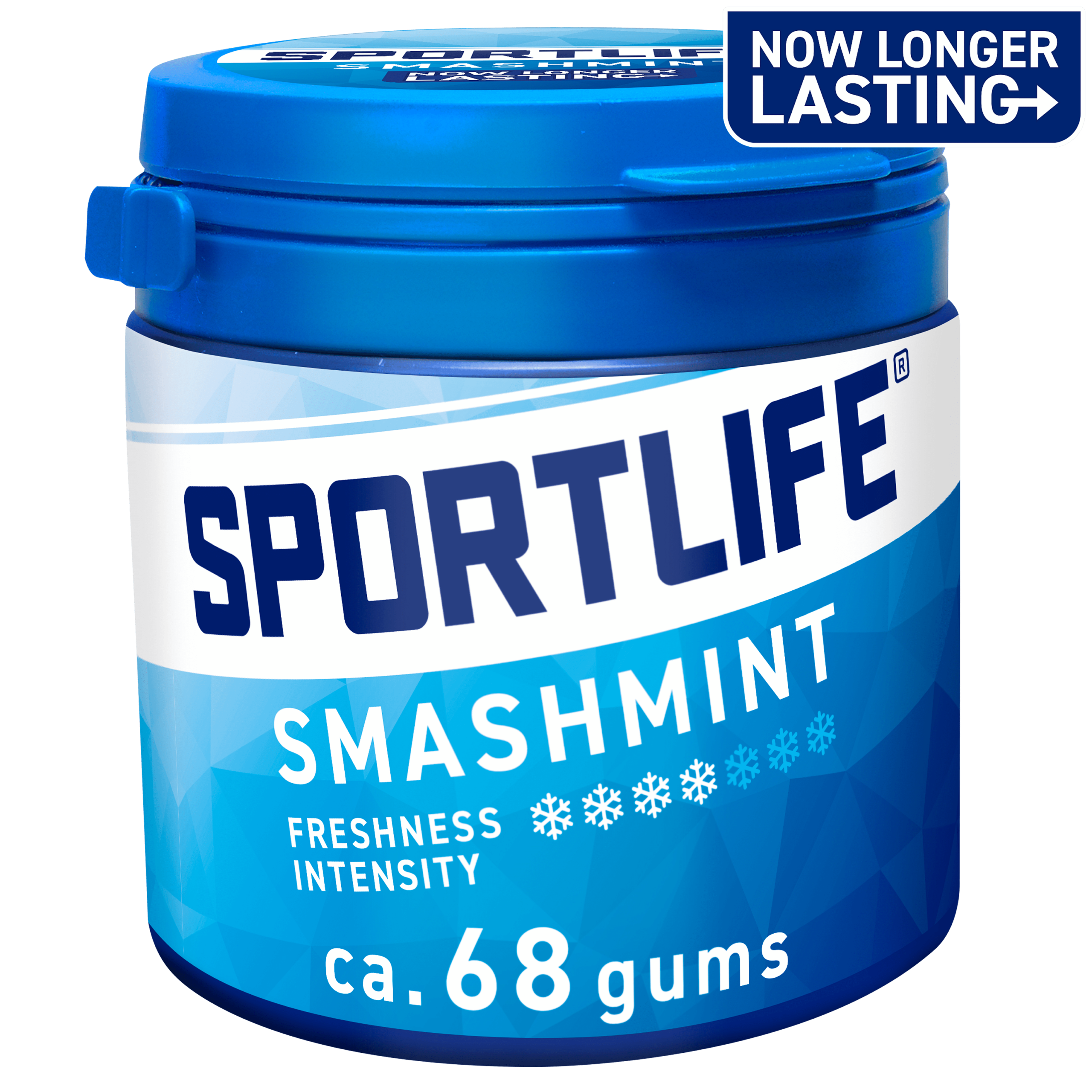 Geniet van de heerlijke, frisse smaak van Sportlife Smashmint Kauwgom. Deze suikervrije kauwgom biedt onverwachte frisheid en blijft dankzij het verbeterde recept nóg langer smakelijk. verpakt in een handige, milieuvriendelijke pot van plantaardig plastic met 68 kauwgoms, ideaal voor onderweg of op je bureau.