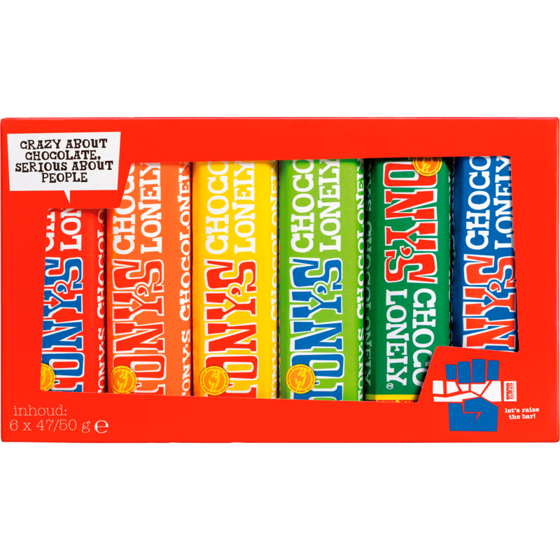 Ontdek de uiteenlopende smaken van Tony’s Chocolonely met het Proeverijtje! Dit kleurrijke regenboogpakket bevat alle zes kleine reepjes van Belgische melkchocolade met stukjes noga. Perfect om je zelf te verwennen of om te delen met vrienden en familie. Tony’s Chocolonely staat voor 100% slaafvrije chocolade en met elke hap kies je voor ethisch verantwoorde zoetheid. Geniet van de beste chocolade zonder bittere nasmaak!