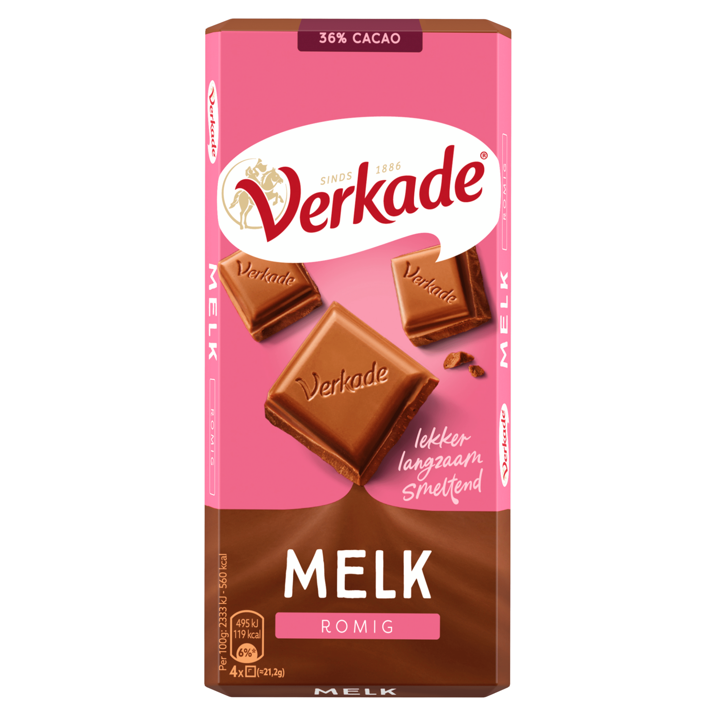 Geniet van de heerlijke Verkade Romige Melk, een onweerstaanbare melkchocolade die langzaam smelt in je mond. Al sinds 1886 staat Verkade garant voor de lekkerste koekjes en chocolade, met een focus op kwaliteit en smaak. Deze Fairtrade chocolade is niet alleen vol van smaak, maar ook geschikt voor vegetariërs. Bewaar deze romige lekkernij koel, droog en donker.