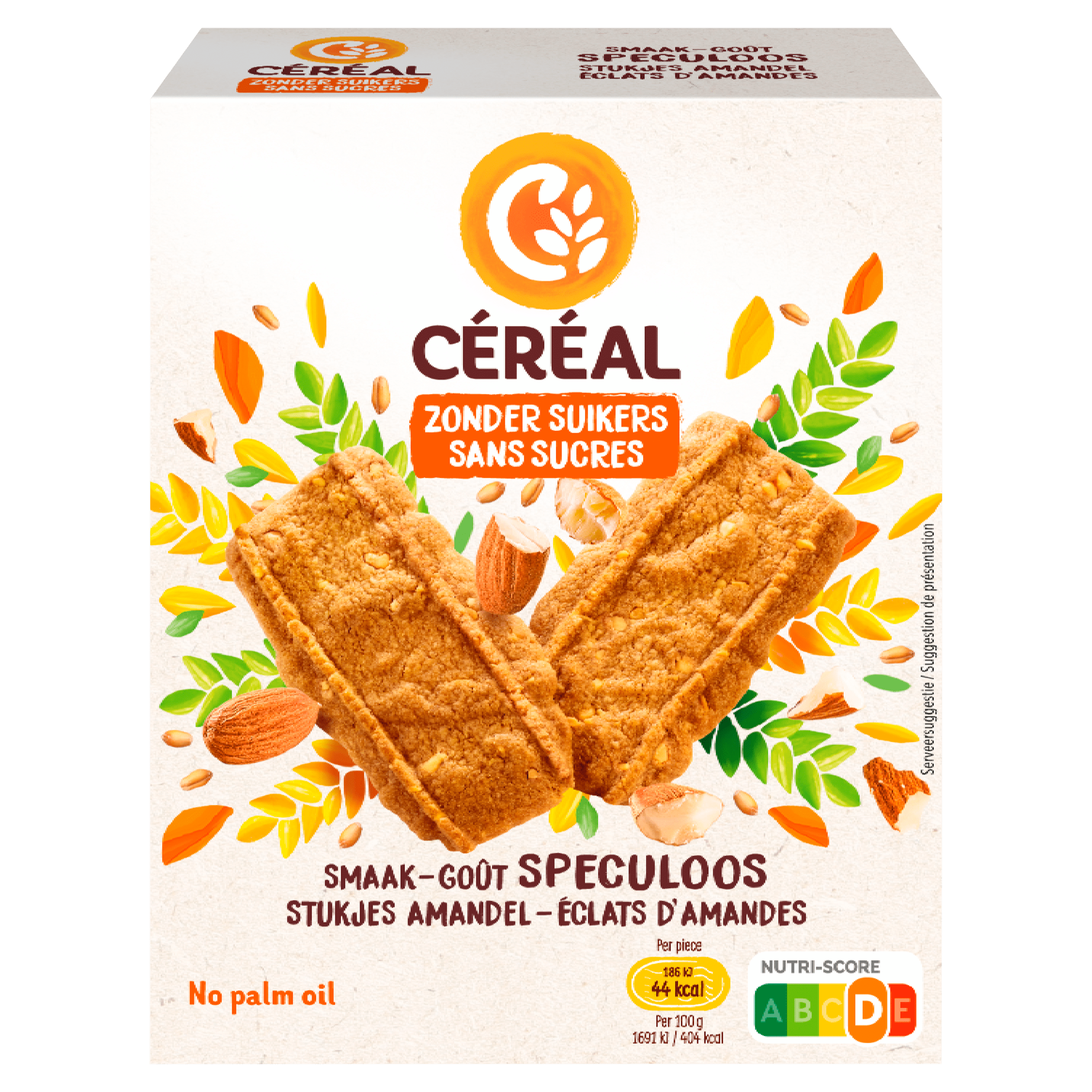 Geniet van de heerlijke Céréal koekjes met speculoossmaak en stukjes amandel, volledig zonder suikers! Deze verantwoorde lekkernij is ideaal als traktatie bij een kopje koffie of thee. Met 0% suikers en de natuurlijke zoetstof maltitol zijn deze koekjes een betere keuze voor je bloedsuikerspiegel. Bovendien zijn ze vrij van palmolie en bevatten ze geen kunstmatige kleurstoffen of conserveermiddelen. Perfect voor een moment van zelfverwennerij of om te delen met vrienden!