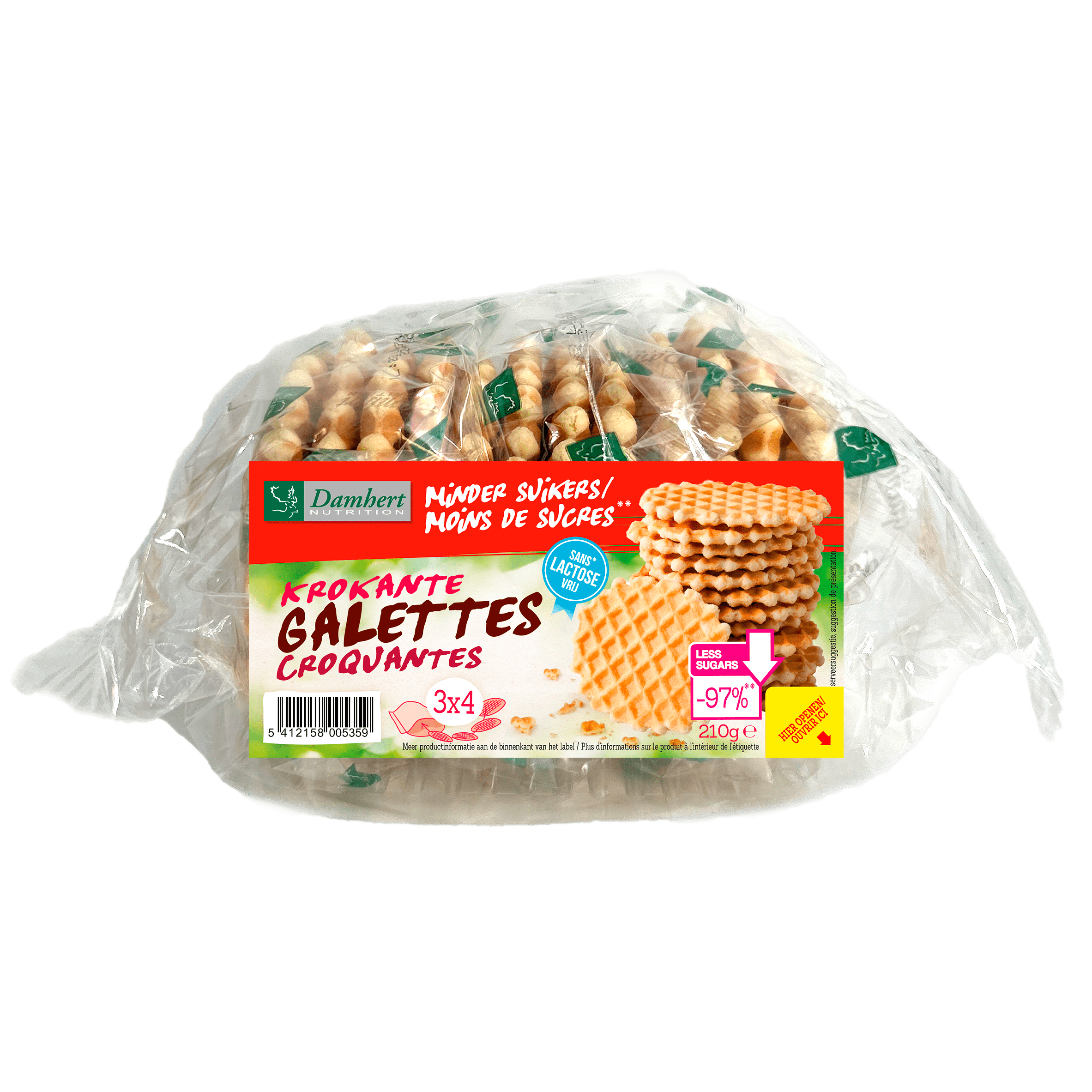 Geniet van deze heerlijke Damhert Galetten, krokante wafeltjes met maar liefst 97% minder suikers! Ideaal voor liefhebbers van artisanale koekjes die letten op hun suikerinname. Deze lactosevrije galetten zijn perfect voor onderweg en zijn handig verpakt in porties. Een smakelijke snack die ook geschikt is voor een suikerarm dieet.