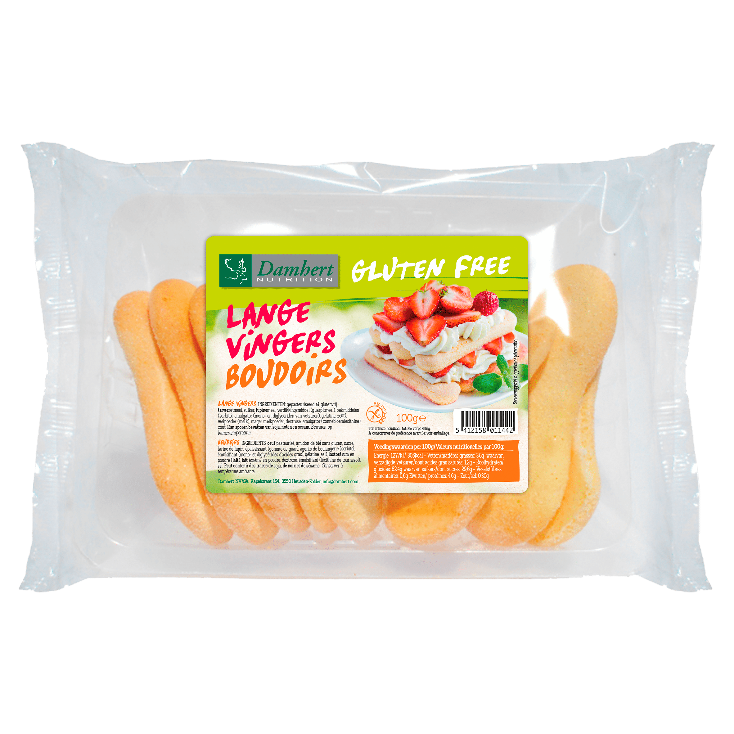 Houd jij van tiramisu maar heb je coeliakie? Dan zijn de Damhert Glutenvrije Lange Vingers de perfecte oplossing voor jou! Deze luchtige koekjes zijn ideaal om te verwerken in verschillende desserts, zoals tiramisu, maar ook als kinderkoekje zeer geschikt. Bewaar ze op kamertemperatuur en geniet van deze glutenvrije lekkernij.