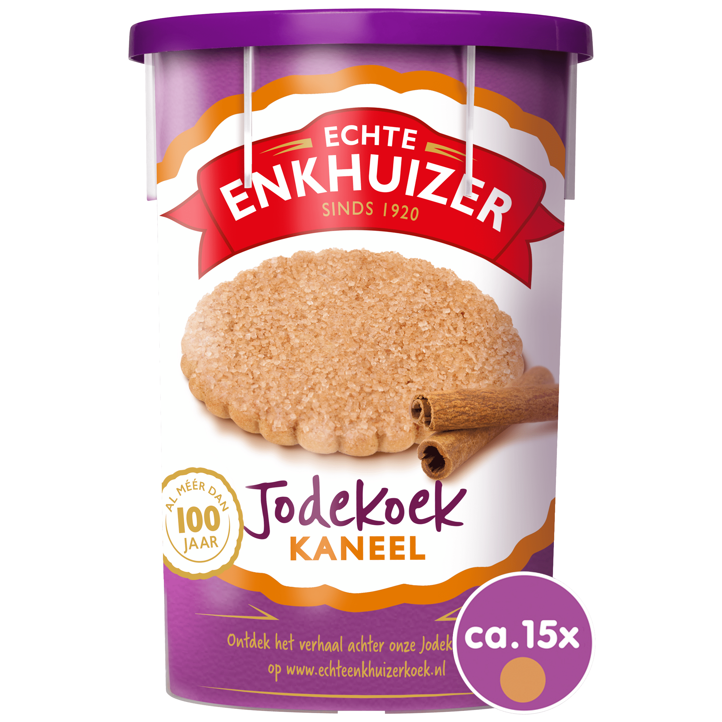 Geniet van de heerlijke smaak van de Echte Enkhuizer Jodekoek met kaneel. Deze traditionele lekkernij is gemaakt van zorgvuldig geselecteerde ingrediënten en heeft een perfecte balans van zoete en kruidige smaken. Bewaar de koeken koel en droog, en ontdek het verhaal achter onze Jodekoeken op www.echteenkhuizerkoek.nl. Een smakelijke traktatie voor het hele gezin!