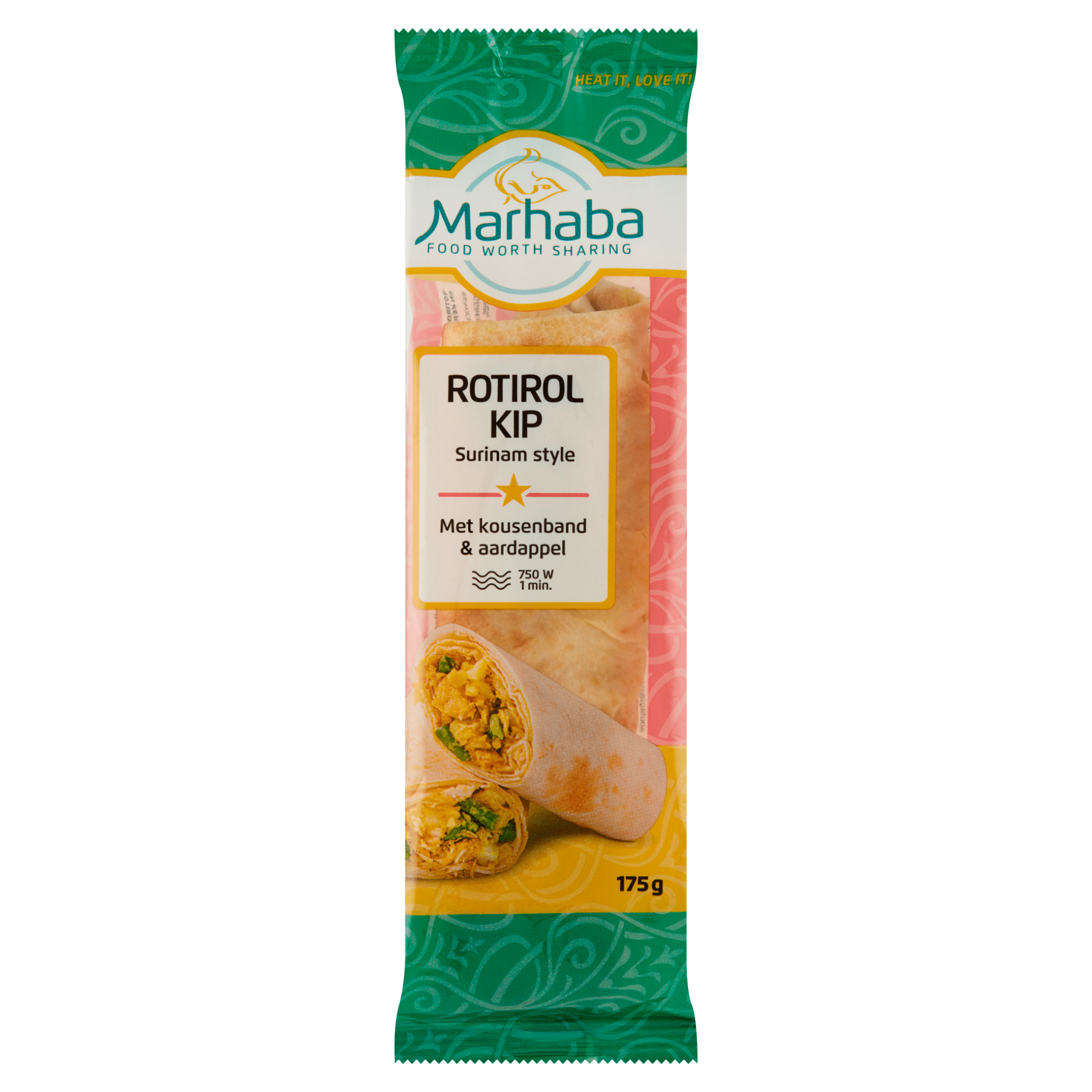 Geniet van de authentieke smaken van Suriname met de handgemaakte Marhaba Roti rol kip. Deze smakelijke rotiplaat, rijkelijk gevuld met kip, kousenband, aardappel en gekruid met een heerlijke masala, biedt een unieke culinaire ervaring. Perfect voor een snelle maaltijd: eenvoudig te bereiden in de magnetron. Ideaal voor zowel doordeweekse maaltijden als bijzondere gelegenheden.