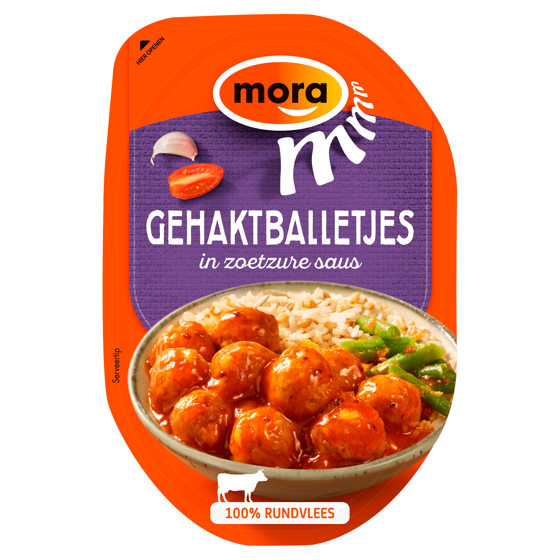 Geniet van Mora Gehaktballetjes in Zoetzure Saus, gemaakt van 100% rundvlees en zonder kunstmatige geurstoffen. Deze vriesverse balletjes zijn perfect voor een snelle maaltijd. Pak het bakje uit, verwarm het in de magnetron en geniet van deze heerlijke combinatie van vlees en saus. De verpakking is recyclebaar, wat bijdraagt aan een beter milieu.