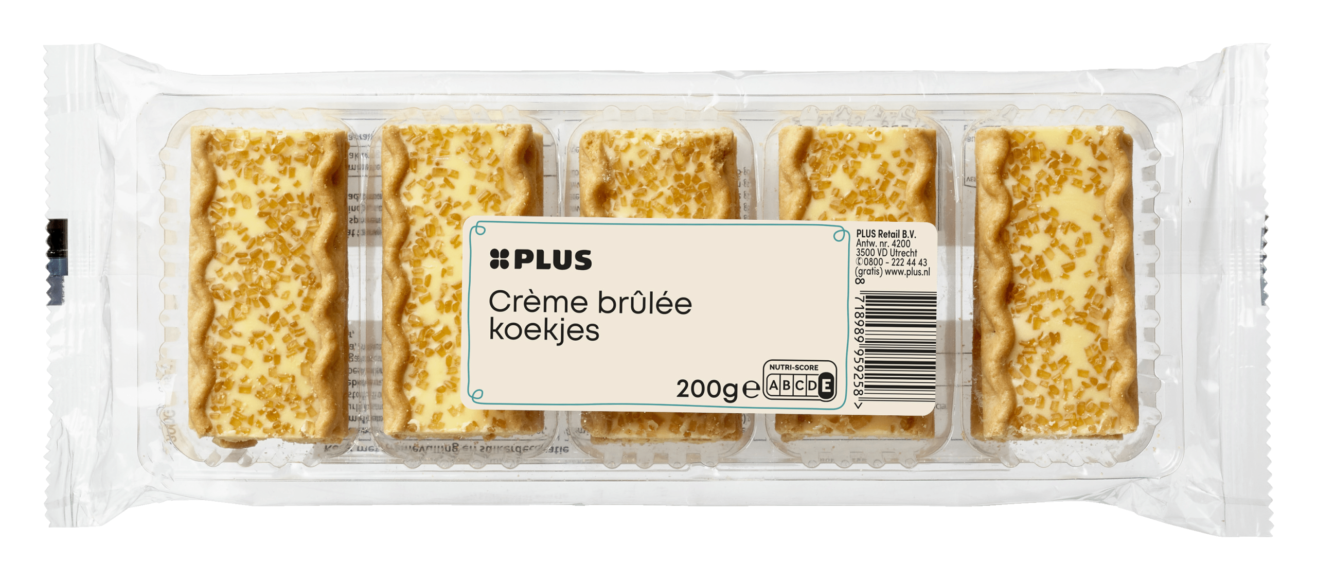 Geniet van de onweerstaanbare PLUS Crème Brulée koekjes, perfect gebalanceerd met een romige crèmevulling en een knapperige buitenkant. Deze koekjes zijn ideaal voor een zoete snackmoment of bij een kopje koffie. Ze zijn vegetarisch en hebben een Nutri-Score E. Bewaar ze koel en droog voor de beste smaak.