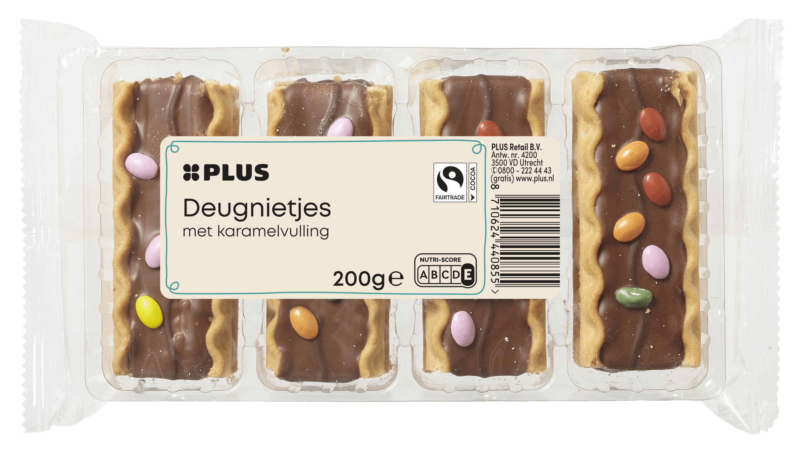 Geniet van de onweerstaanbare PLUS Deugnietjes Fairtrade! Deze krokante koekjes zijn gevuld met een heerlijke karamelvulling en omhuld met melkchocolade. Perfect als tussendoortje of bij de koffie. Met een Nutri-Score E en vegetarisch van aard, zijn ze een verwennerij die je verdient. Bewaar ze droog en donker voor optimaal genot.