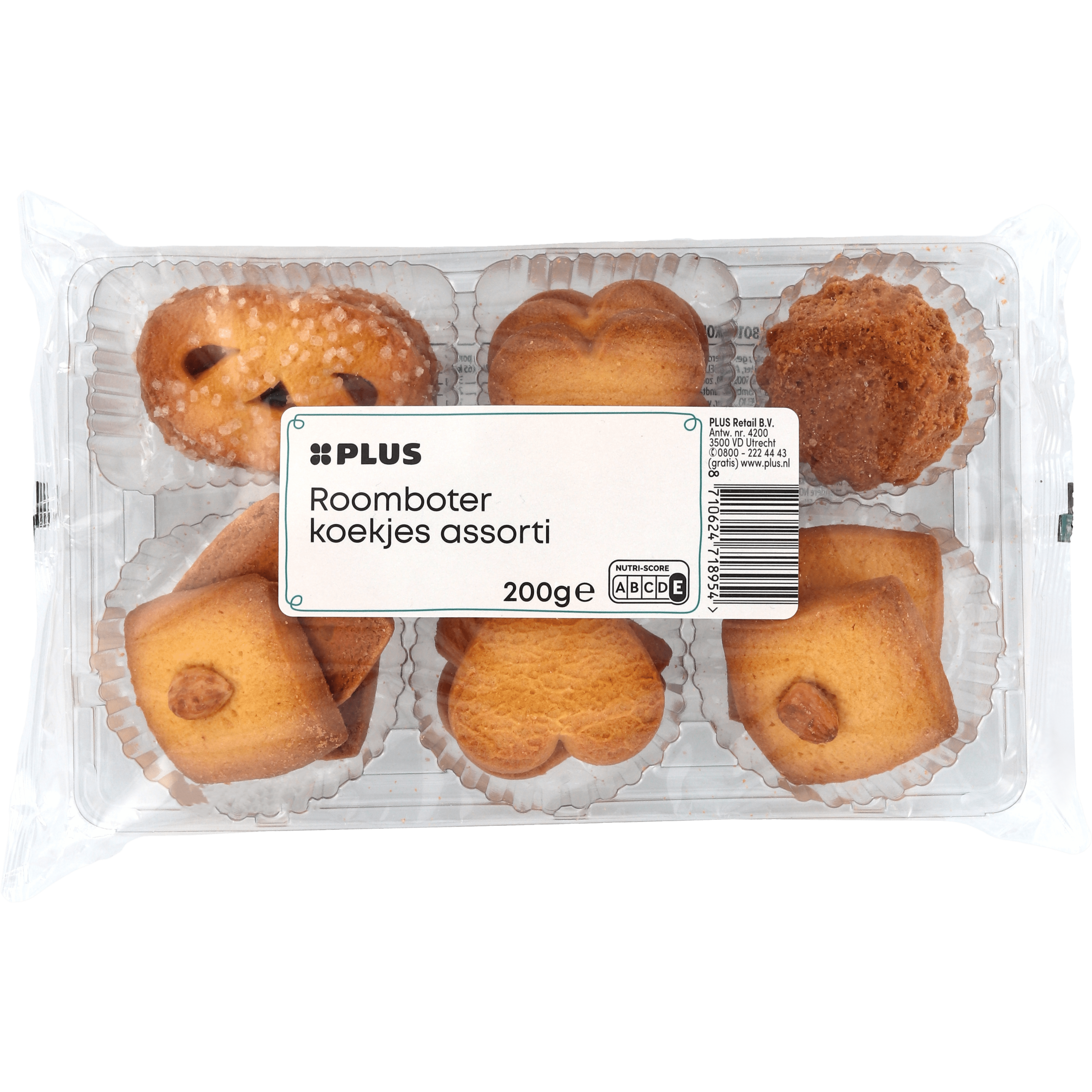 Geniet van de heerlijke smaak van de PLUS Koekjes assorti roomboter. Deze lekkernijen zijn perfect voor bij de koffie of als snack tussendoor. Met een combinatie van verrukkelijke zandtaartjes, knapperige krakelingen en met zorg geselecteerde noten, zijn deze koekjes een ware traktatie voor de zoetekauwen. Bewaar de koekjes goed afgesloten op een donkere plek om de versheid te behouden.