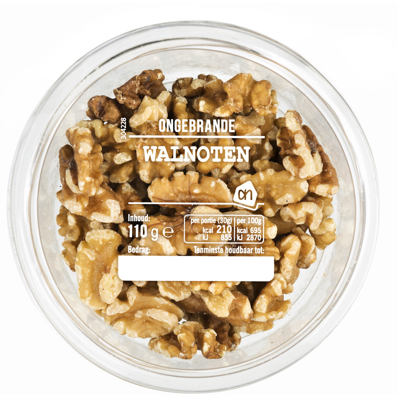 Geniet van de pure, ongebrande walnoten van AH. Deze noten, met hun karakteristieke bitterzoete smaak, zijn niet gebakken in olie en daardoor volledig onbewerkt. Ze zijn van nature rijk aan vezels en vormen een uitstekende bron van ijzer. Perfect voor een gezonde snack, door salades of als toevoeging in zelfgemaakte taarten en koekjes.