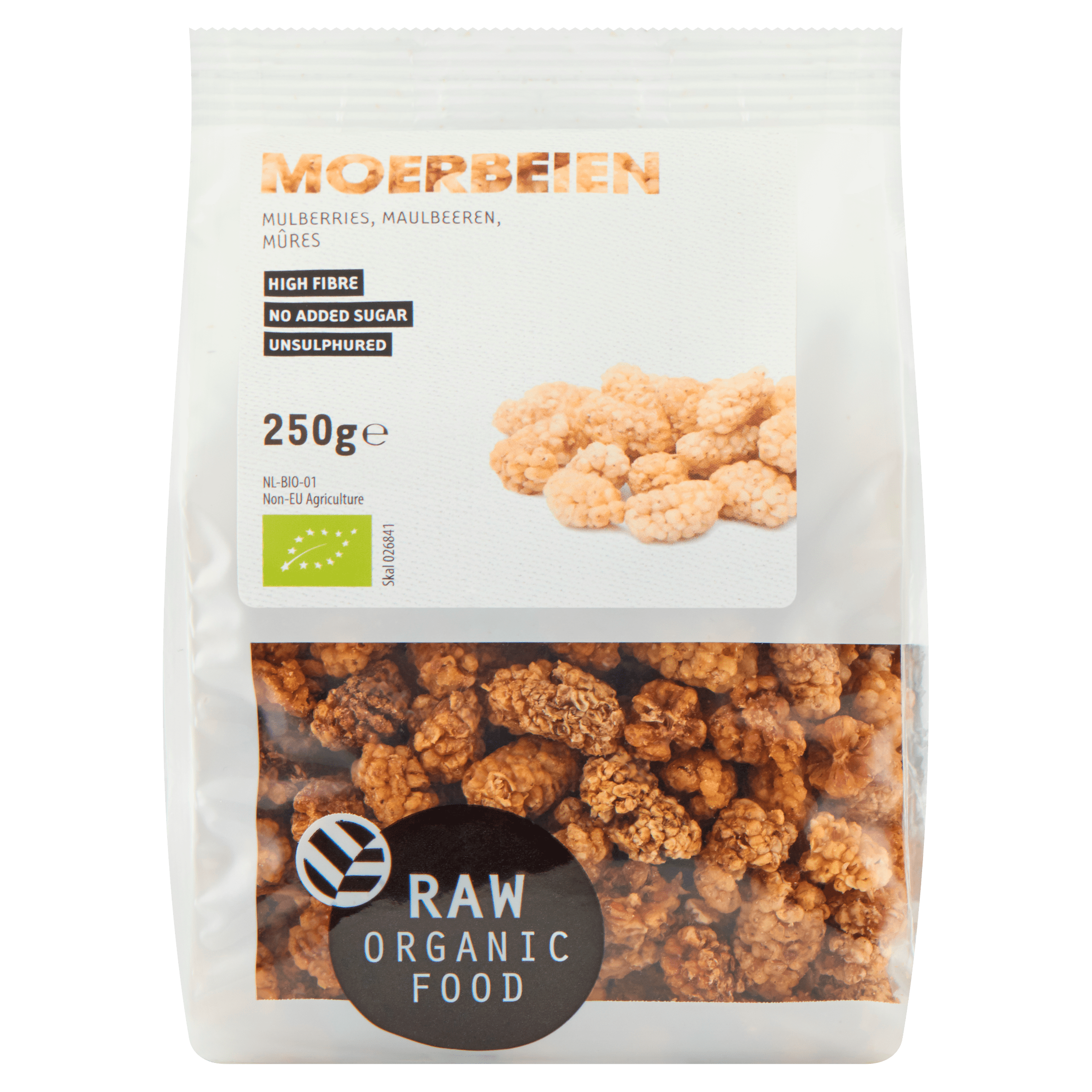 Geniet van de heerlijke, biologische moerbeien van Raw Organic Food. Deze moerbeien zijn volledig vrij van toegevoegde suikers en bevatten van nature aanwezige suikers. Perfect als gezonde snack of als toevoeging aan je favoriete gerechten. Bewaar de moerbeien koel, donker en afgesloten voor optimale versheid.