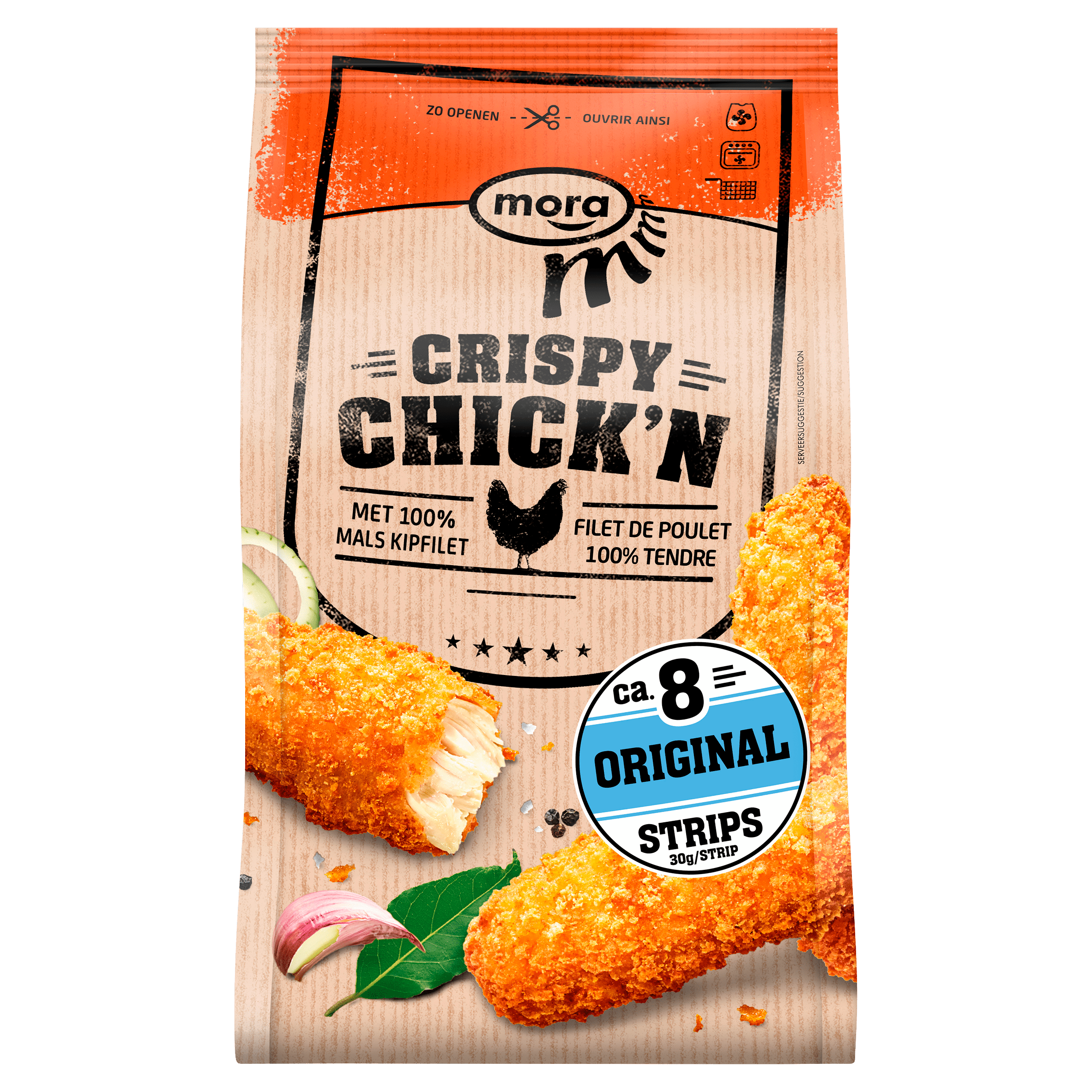 Geniet van de heerlijke Mora Crispy Chick’n Original, gemaakt van 100% mals kipfilet. Deze knapperige kipstrips zijn perfect voor bij de borrel of als maaltijd. Ze zijn vrij van kunstmatige geurstoffen en bevatten alleen de beste ingrediënten voor een smakelijke ervaring. Eenvoudig te bereiden in de airfryer in slechts 6 minuten. Perfect voor een snelle snack of als onderdeel van een hoofdgerecht.