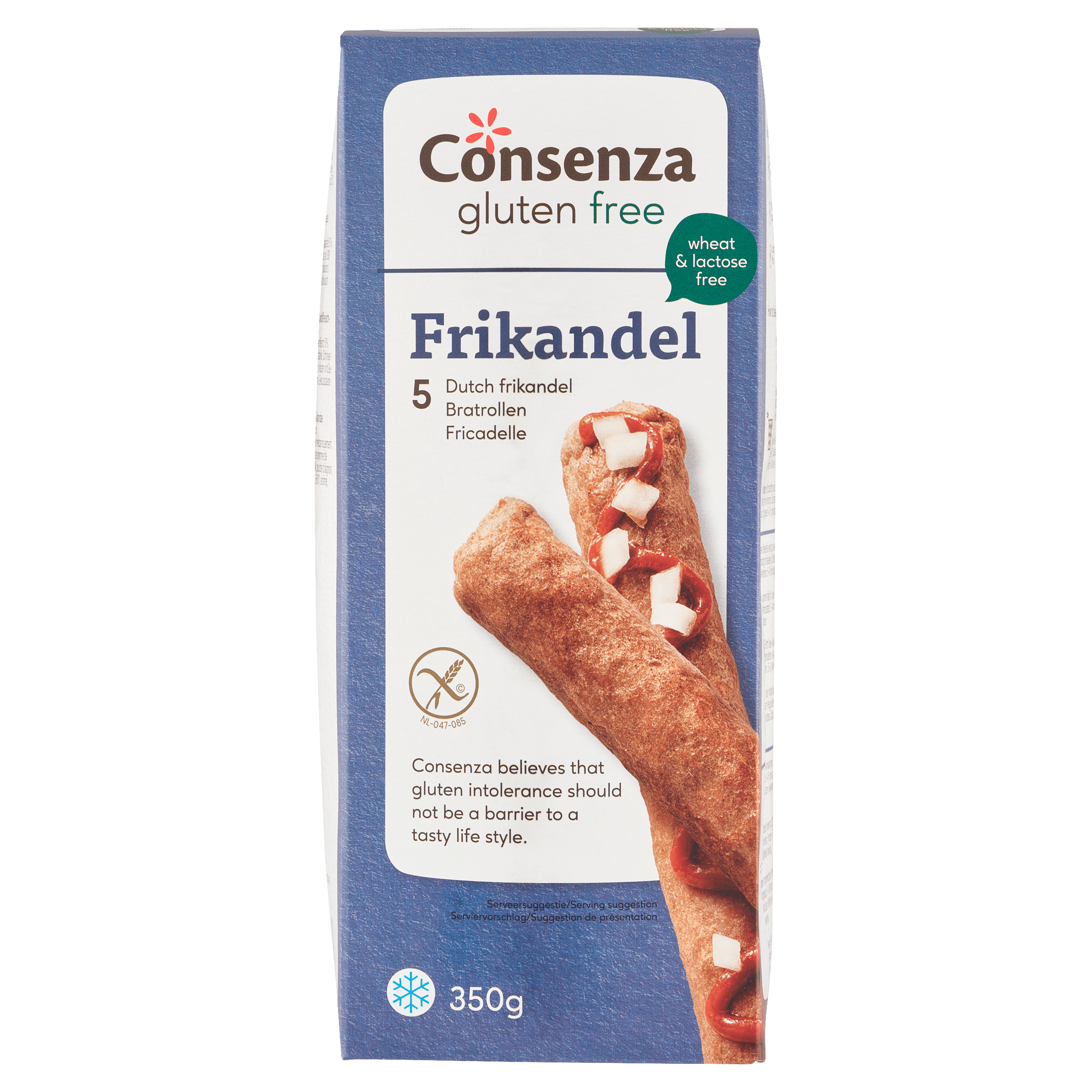 Geniet van de heerlijke smaak van Consenza Frikandellen, speciaal ontwikkeld voor iedereen die houdt van glutenvrije maaltijdopties. Deze frikandellen zijn vriesvers en gemaakt van hoogwaardige ingrediënten zonder tarwe en lactose, waardoor ze ook geschikt zijn voor mensen met gluten- of lactose-intolerantie. Gemakkelijk te bereiden in de friteuse, perfect als snack of hoofdgerecht.