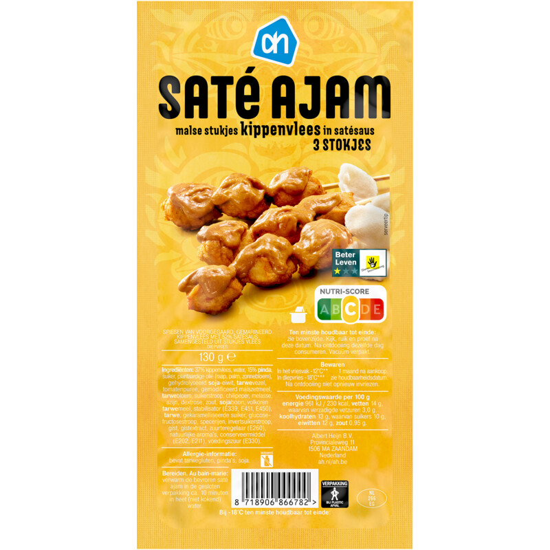 Geniet van de malse AH Kipsate op Stokje, gemaakt van voorgegaard en gemarineerd kippenvlees met maar liefst 52% overheerlijke satésaus. Deze smaakvolle spiesen zijn perfect voor een snelle en heerlijke maaltijd. Serveer ze met friet, rijst of een lekker stuk brood voor een authentieke saté-ervaring. Ideaal voor een gezellige maaltijd met vrienden of familie!