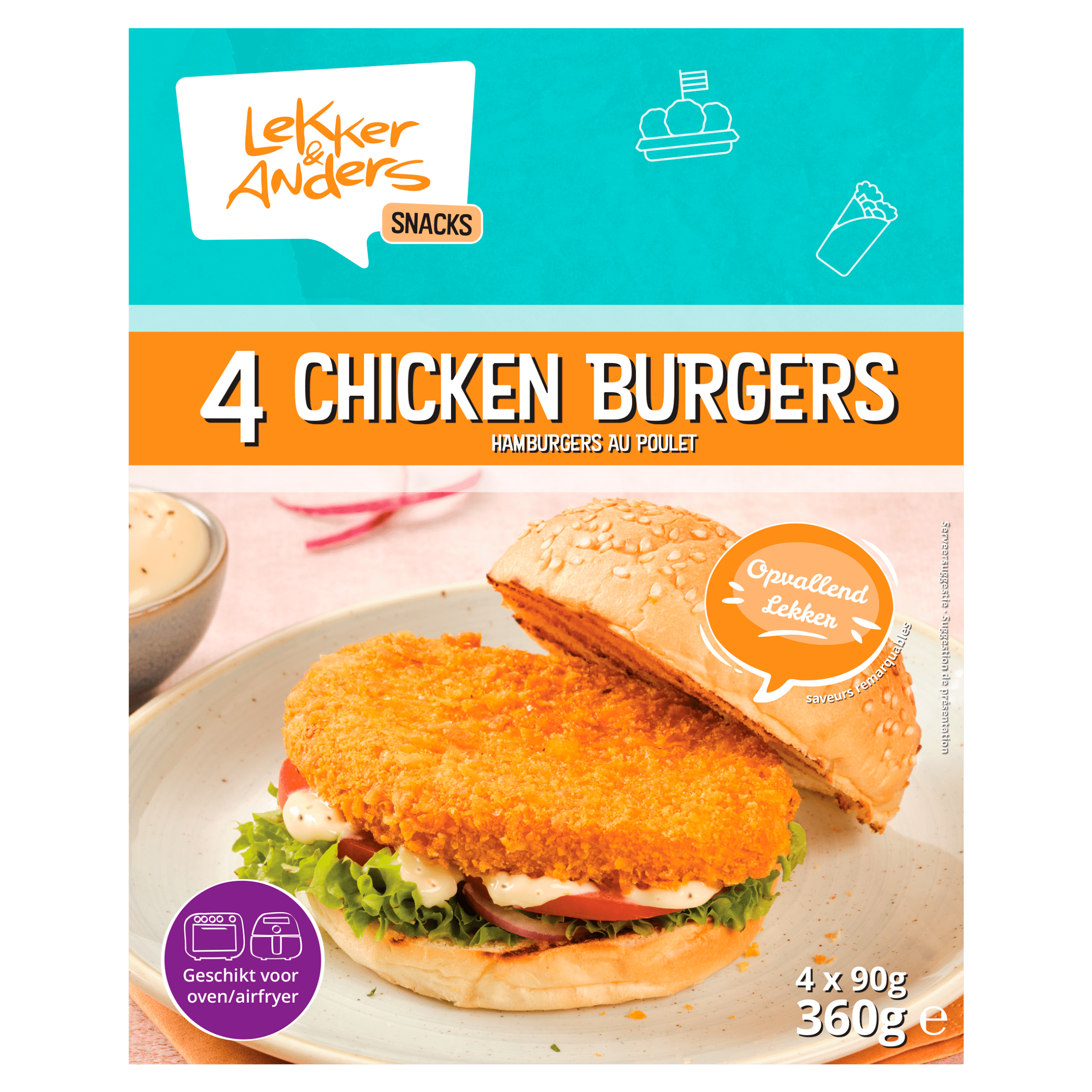 Geniet van de heerlijke smaken van de Lekker & Anders Chicken Burgers. Deze smaakvolle burgers zijn gemaakt van 46% kippenvlees en perfect gekruid voor een onweerstaanbare smaakervaring. Ideaal voor een snelle maaltijd of als onderdeel van een gezellige barbecue. Eenvoudig te bereiden in de frituurpan in slechts 4 minuten bij 175°C.