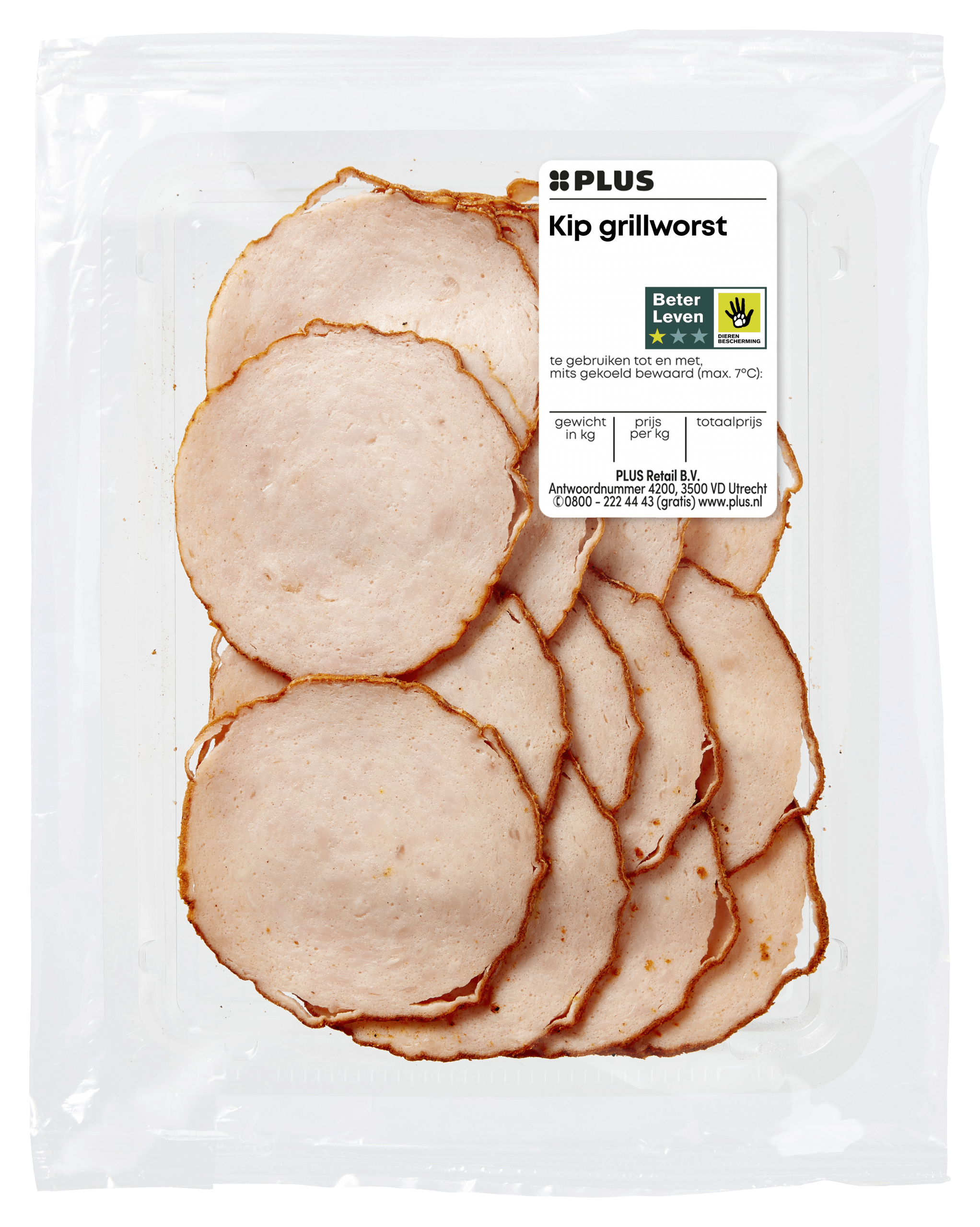 Proef de heerlijke PLUS Kip grillworst, gemaakt van maar liefst 79% kwaliteitskippenvlees met een Beter Leven 1 Ster keurmerk. Deze smaakvolle grillworst is gekoeld te bewaren en perfect voor bij de barbecue of als snelle snack. Met een lage waarde aan koolhydraten en een Nutri-Score D is dit een verstandige keuze voor iedereen die van lekker eten houdt.
