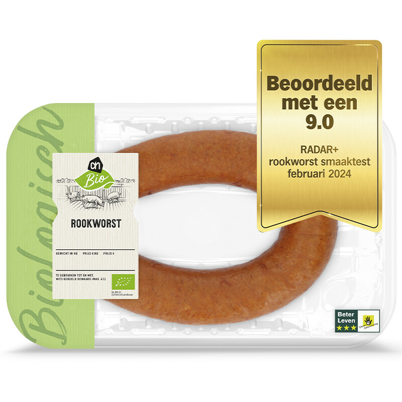Geniet van de authentieke smaak van onze AH Biologisch Rookworst, gemaakt van 94% hoogwaardig biologisch varkensvlees en traditioneel gekruid met een zorgvuldig geselecteerd kruidenpakket. Deze ambachtelijke rookworst is op authentieke wijze gerookt met beukenhoutsnippers, wat zorgt voor een lichte en authentieke rooksmaak. Perfect voor een stevige stamppot, in een klassieke erwtensoep of simpelweg op een lekker broodje.