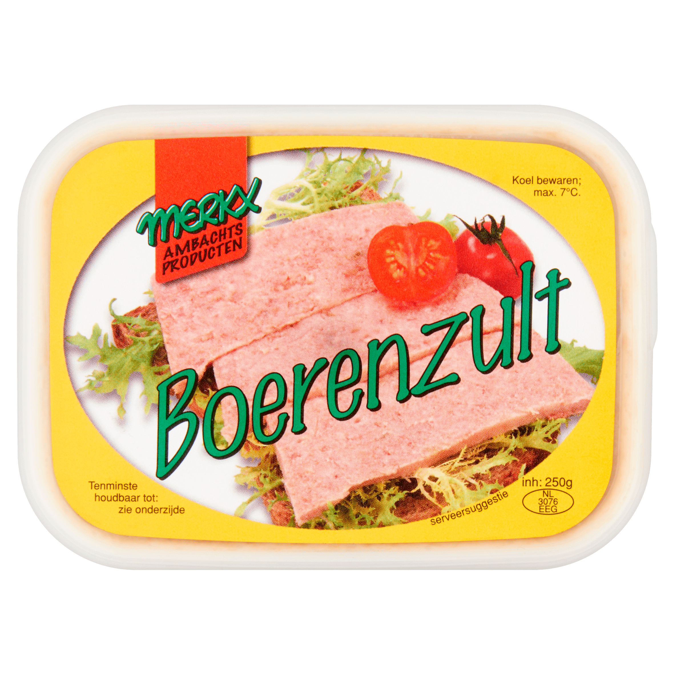 Geniet van de rijke smaak van Merkx Boerenzult, een traditionele lekkernij die zorgvuldig is bereid met varkensvlees en een mix van smaakvolle ingrediënten zoals augurk en kruiden. Dit kuipje van 250 g is ideaal voor op brood of als smaakmaker in diverse gerechten. Bewaar koel en geniet optimaal van de beste kwaliteit.