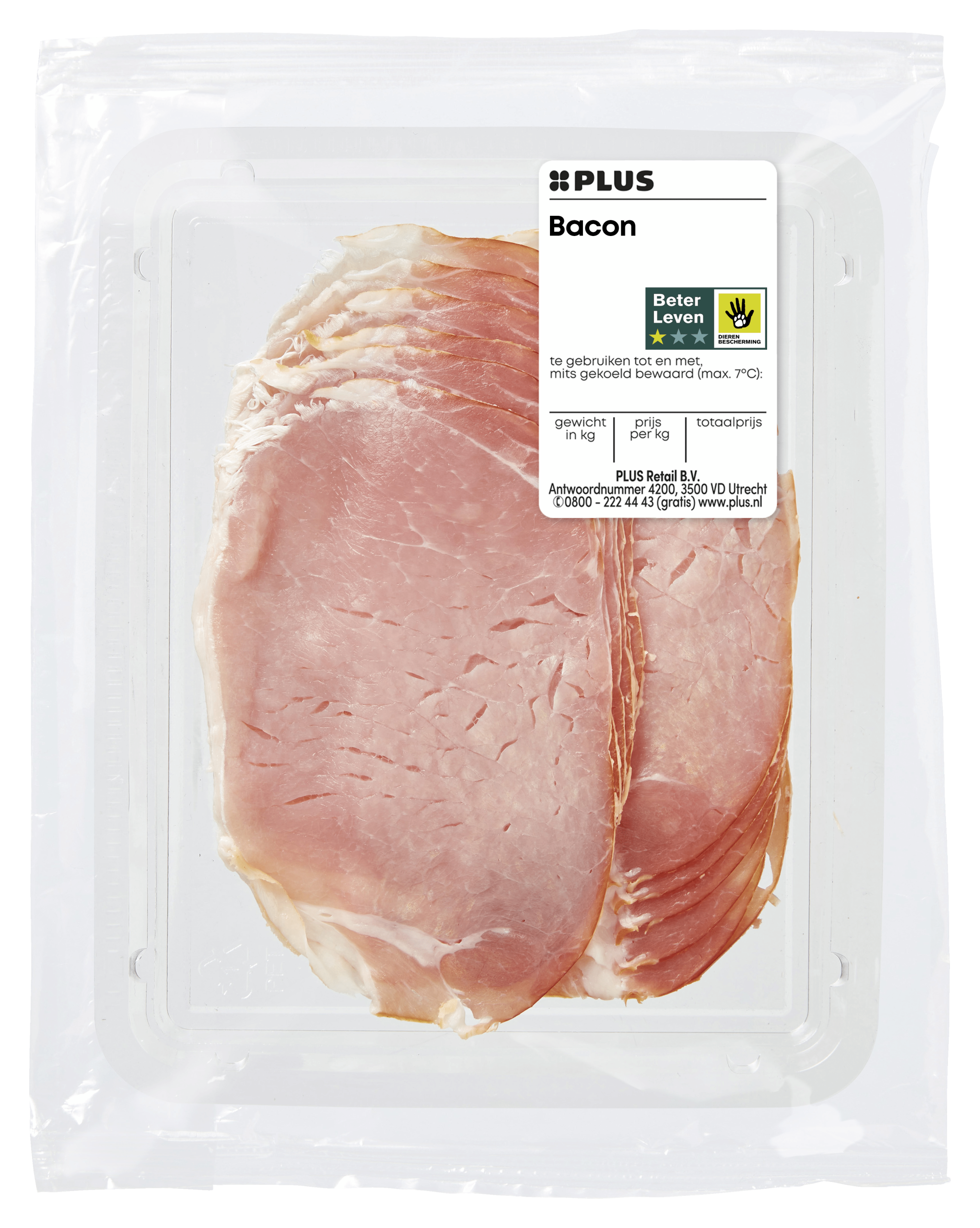 Geniet van de rijke smaak van PLUS Bacon, gemaakt van 97% varkensvlees met het Beter Leven 1 Ster keurmerk. Deze bacon heeft een heerlijke rooksmaak en is perfect voor diverse gerechten. Of je nu een ontbijt wilt opfleuren, een salade wilt versterken of een hartige taart wilt maken, deze bacon is een veelzijdige aanvulling in je keuken. Bewaar de bacon goed in de koelkast en gebruik binnen enkele dagen na opening voor de beste kwaliteit.