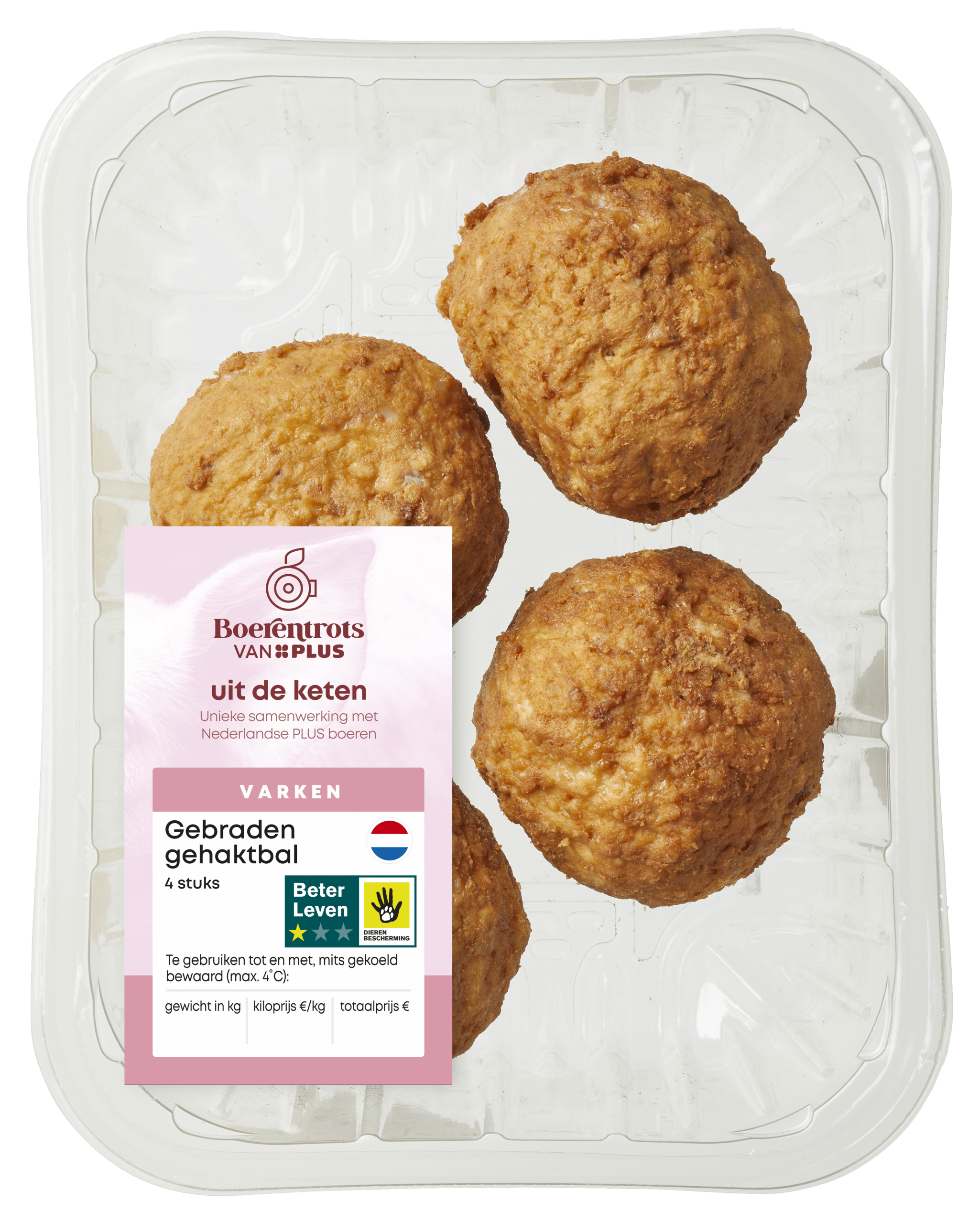 PLUS Boerentrots Gebraden Gehaktbal 4 stuks – Plus