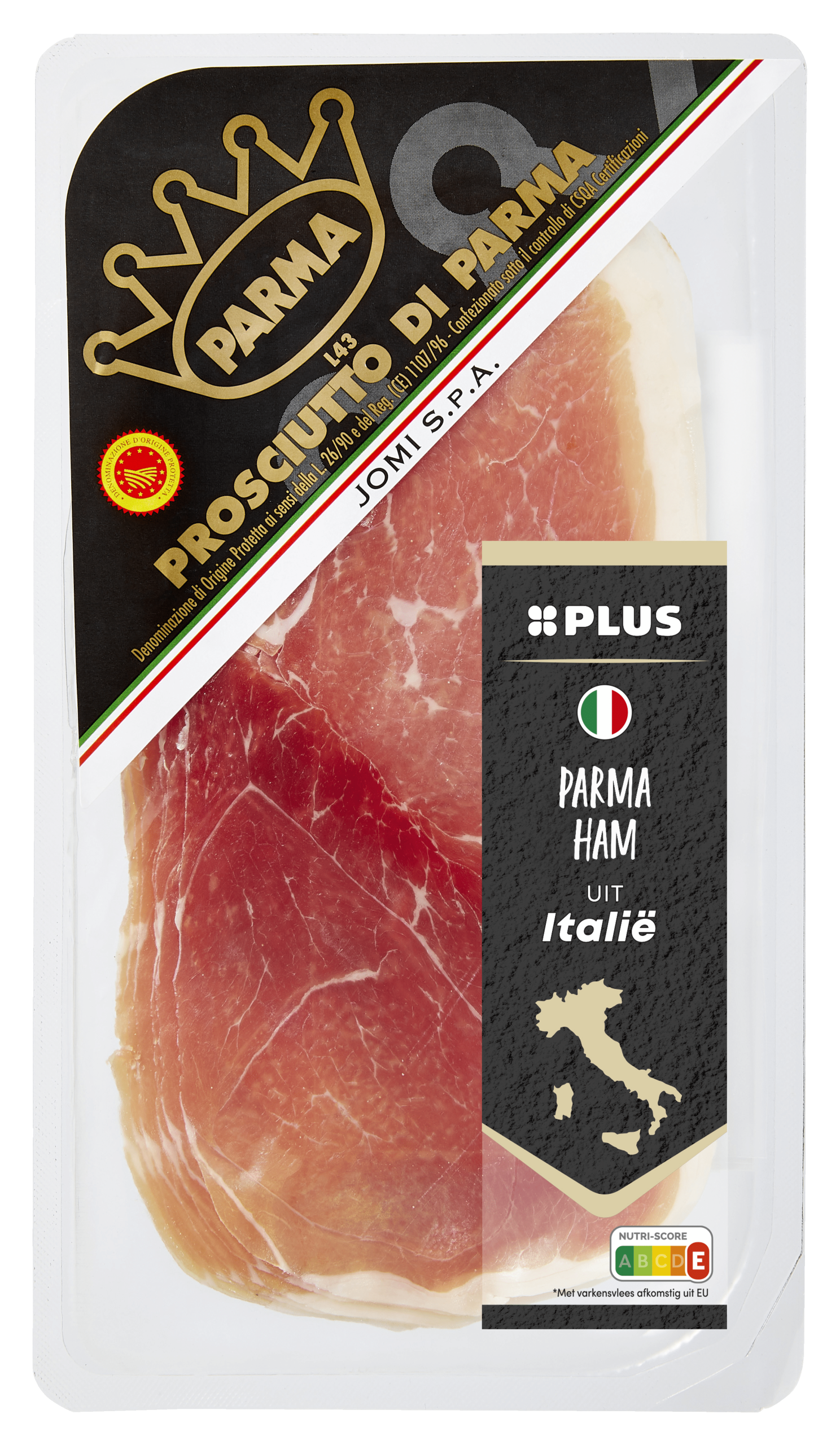 Geniet van de rijke en kruidige smaak van PLUS Parmaham. Deze rauw gedroogde ham is perfect in een salade, op een broodje of als onderdeel van een borrelplank. Gekoeld bewaren voor een optimale smaakbeleving.