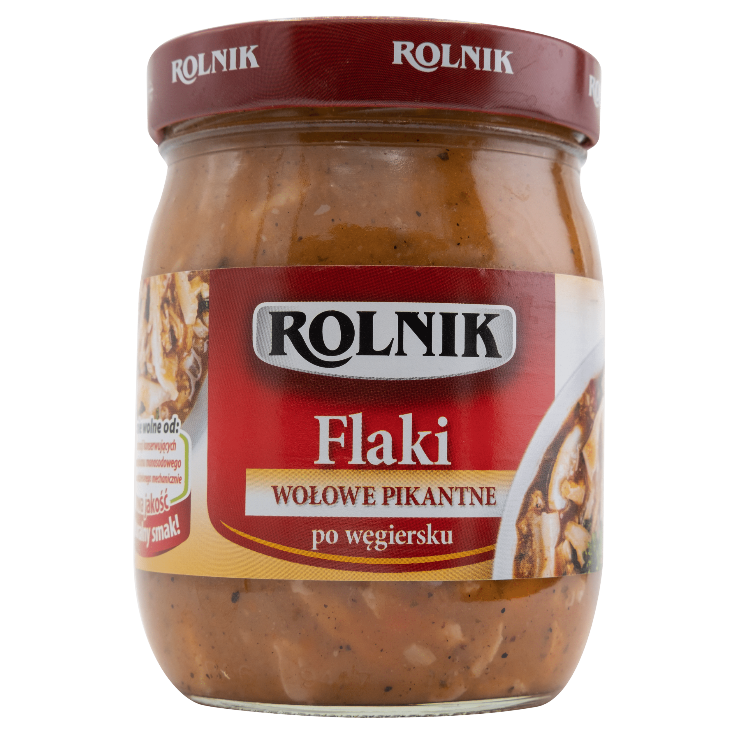 Geniet van de unieke smaken van de Rolnik Flaki, een pikante Hongaarse rundvleesreep die perfect is voor een stevige maaltijd. Dit product bevat een mix van gekookte rundervoormagen en -magen, verrijkt met een zorgvuldig samengestelde kruiden- en aromamix. Maak je gerecht compleet en laat je verrassen door de authentieke Hongaarse smaak. Bewaar het in een koele en droge omgeving en consumeer binnen 24 uur na opening voor de beste smaakervaring.
