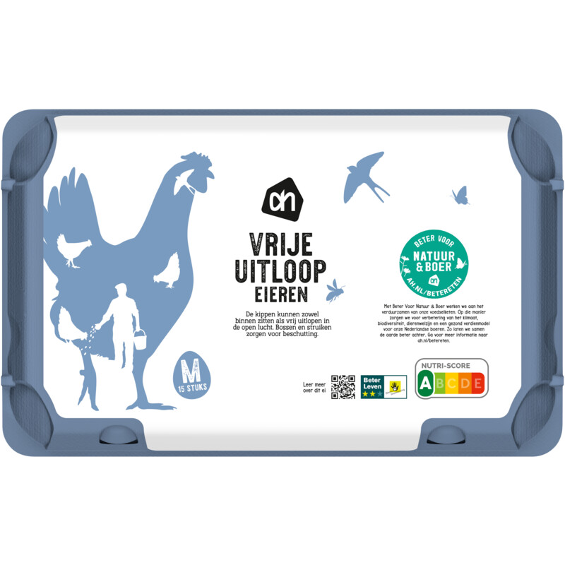 Geniet van de smaak en kwaliteit van onze AH Vrije Uitloop Eieren, met zorg gelegd door kippen die de vrijheid hebben om buiten te scharrelen. Deze kwaliteitsklasse A eieren zijn niet alleen lekker, maar ook verantwoord. Met het Beter Voor Natuur & Boer keurmerk dragen we bij aan een duurzaam voedselsysteem, waarbij het welzijn van de dieren centraal staat. Perfect voor een gezonde maaltijd of als ingrediënt in je favoriete gerechten!
