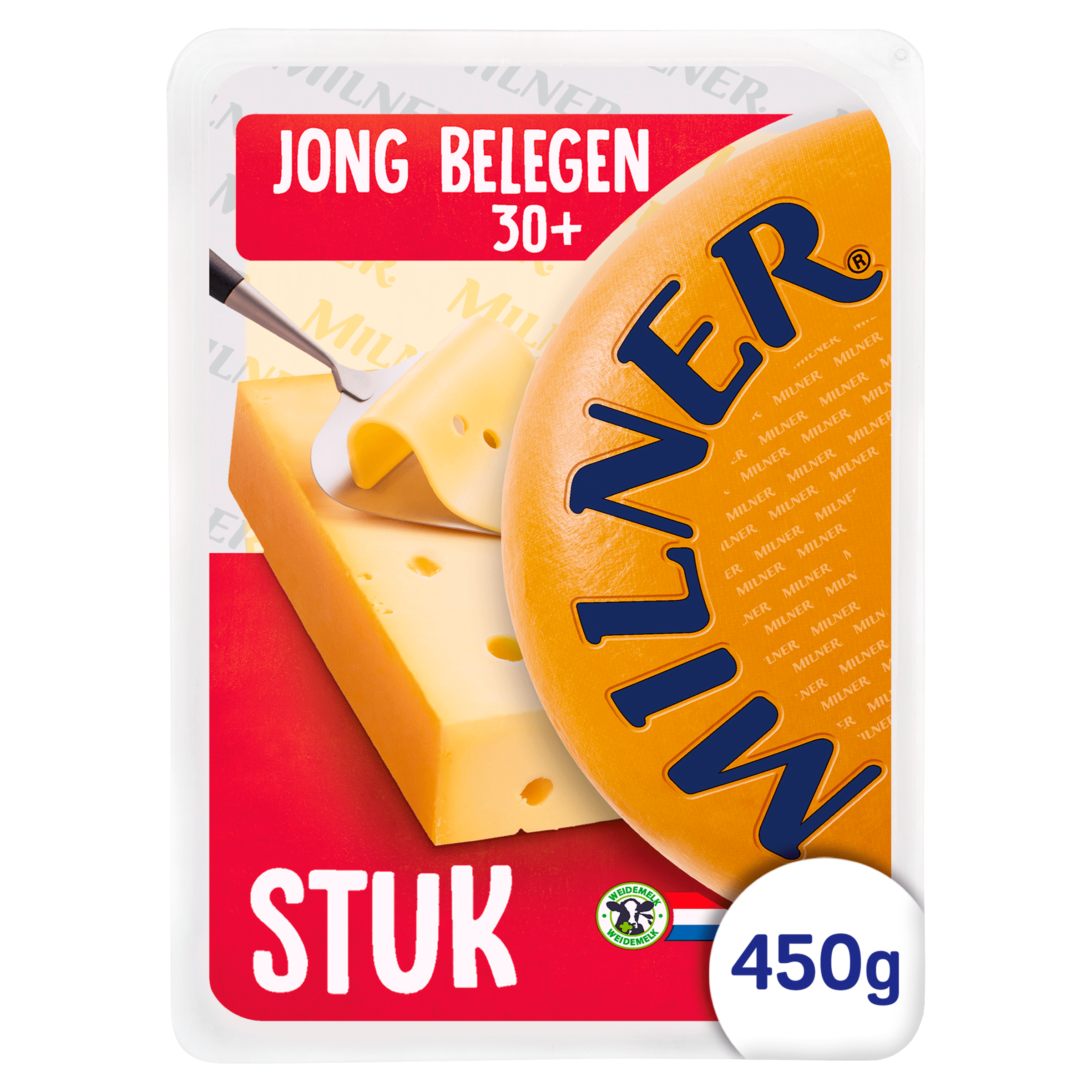 Geniet van de heerlijke smaak van Milner Jong belegen kaas, speciaal gemaakt van halfvolle melk. Deze 30+ kaas is van nature 40% minder vet dan 48+ kaas en rijk aan eiwit, waardoor het een uitstekende keuze is voor een gezonde levensstijl. Perfect voor op brood of als toevoeging aan gerechten. Gekoeld bewaren en altijd genieten van de beste kwaliteit.