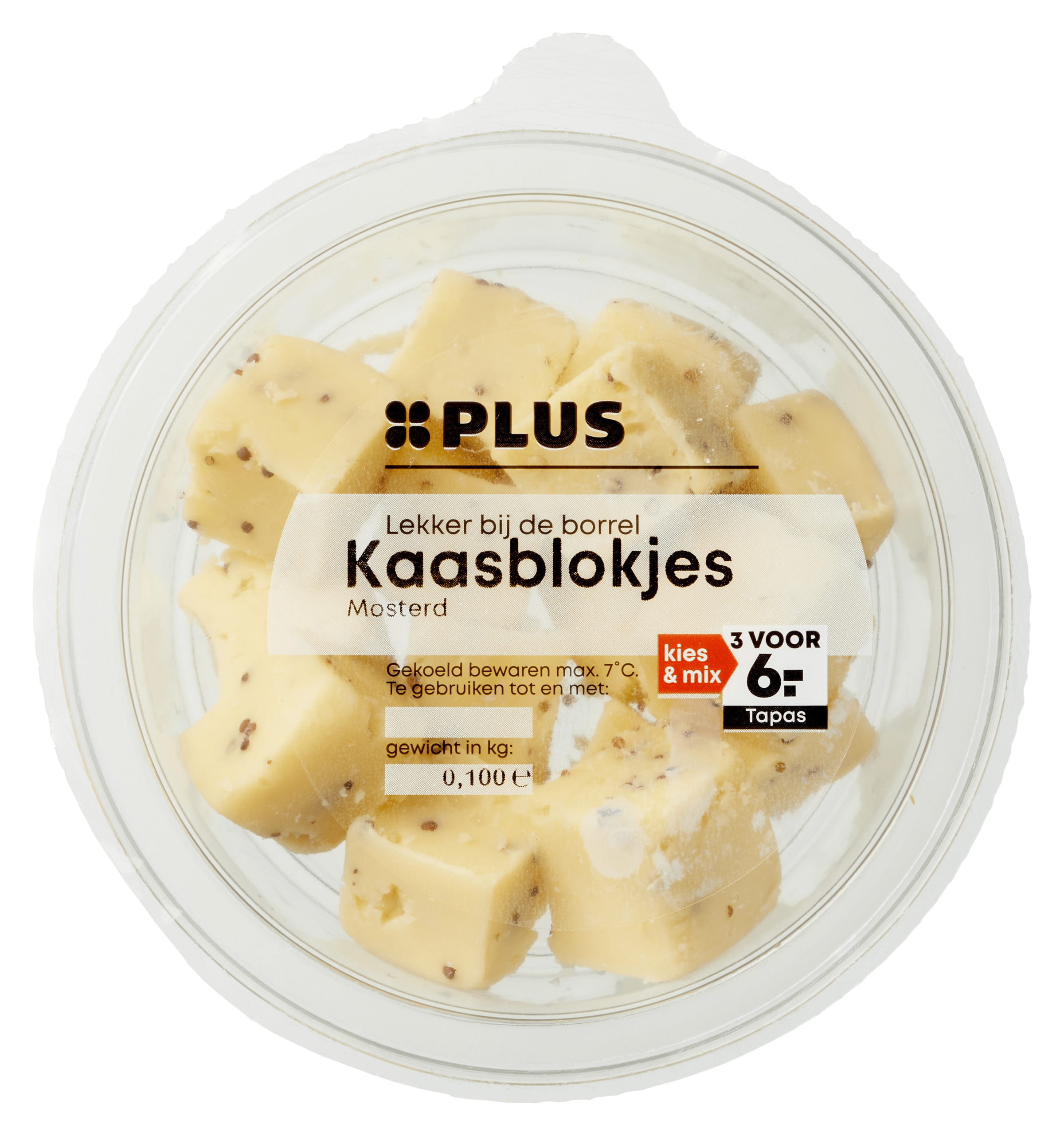 Geniet van de heerlijke PLUS Kaasblokjes met mosterd, perfect als smaakvolle snack of bijgerecht. Deze 48+ kaasblokjes zijn omhuld met een pittige mosterd, wat zorgt voor een unieke en verfijnde smaakbeleving. Gekoeld bewaren en na opening beperkt houdbaar.
