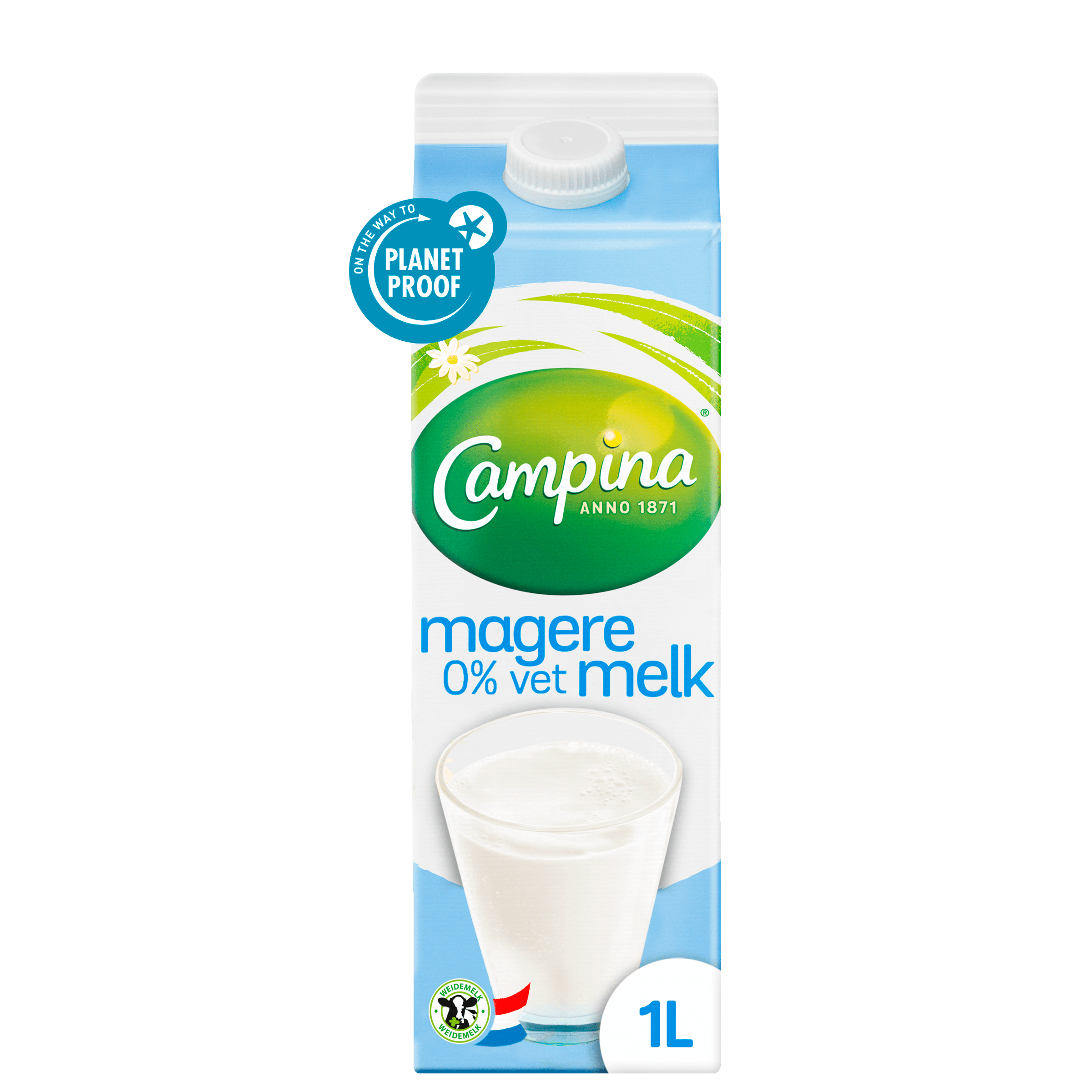 Geniet van de frisse smaak van Campina 0% vet melk, gemaakt van weidemelk van Nederlandse bodem. Deze gepasteuriseerde magere melk is rijk aan calcium en perfect voor een voedzaam ontbijt. Bij Campina staan ze voor kwaliteit en duurzaamheid, waarbij boeren beloond worden voor hun zorg voor koeien, natuur en klimaat. Maak jouw ochtend compleet met deze melk en begin de dag goed!