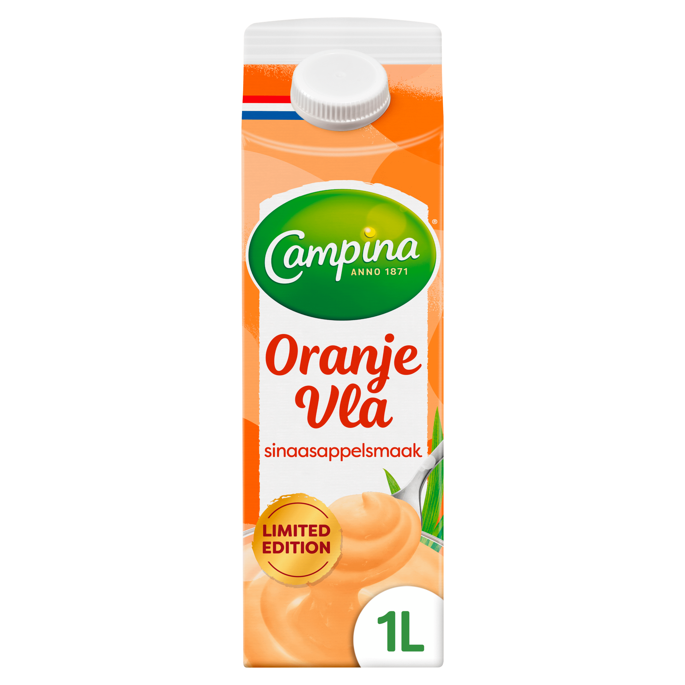 Geniet van de heerlijke en verfrissende Campina Limited Edition Oranje vla! Deze unieke vla is gemaakt van weidemelk en bevat geen kunstmatige kleurstoffen of smaakstoffen. Perfect als toetje voor het hele gezin, en een smakelijke variatie die je wilt proberen. Bewaar de vla gekoeld en ontdek ook de andere seizoensvariaties zoals Mango en Kokos Ananas Vla.