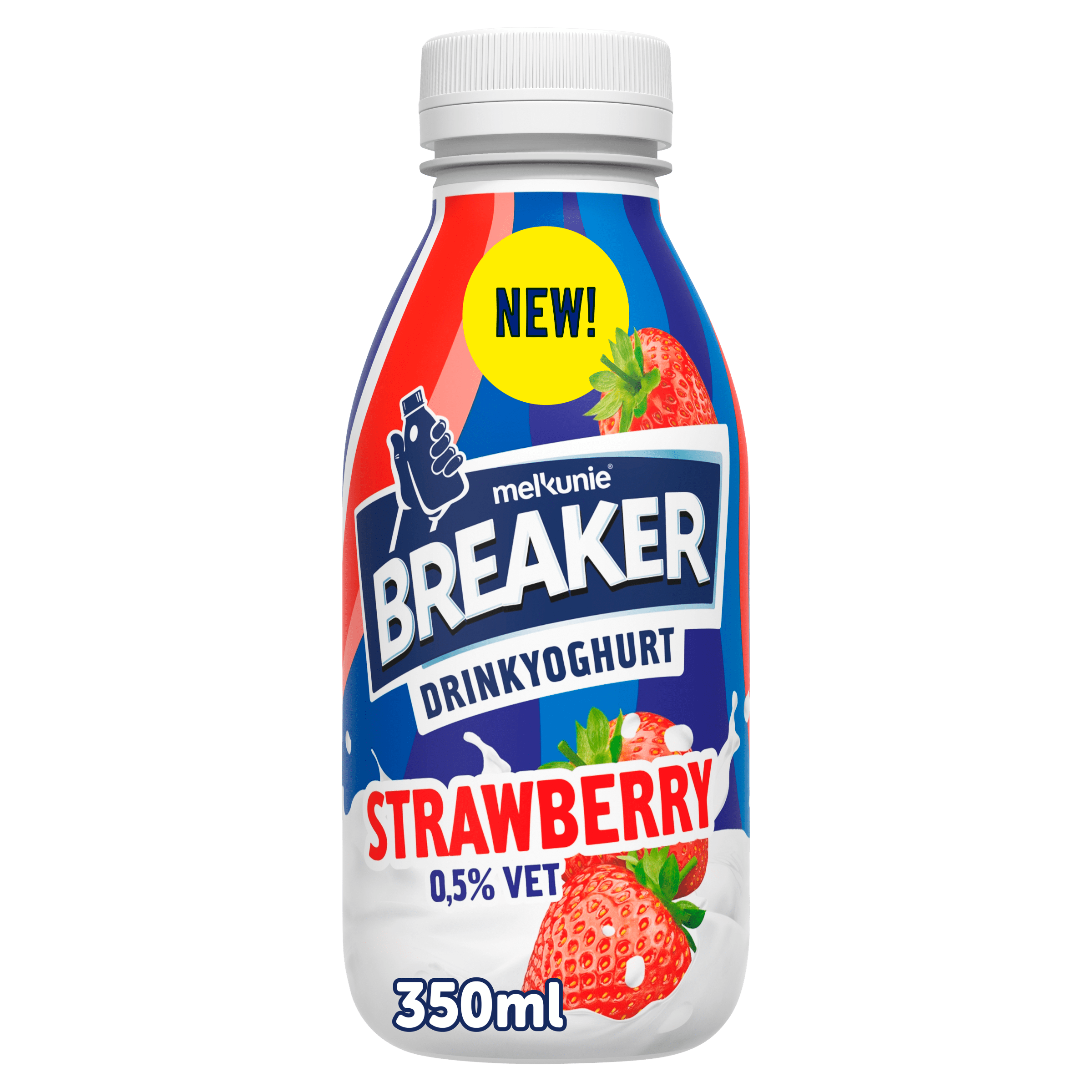 Geniet van de verfrissende Melkunie Breaker Drink met aardbeismaak in een handige fles van 350 ml. Deze drinkyoghurt bevat 0,5% vet en is perfect gekoeld te drinken. Goed schudden voor gebruik voor de beste smaakbeleving. Bewaar de drinkyoghurt op een koele plek (max. 7°C) en geniet van het lekkere aardbeien- en passievruchtensmaak.